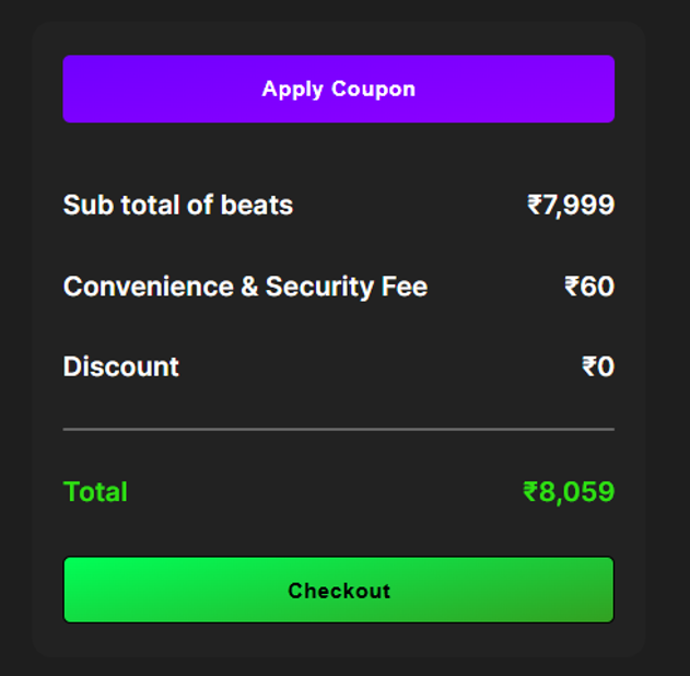 If a seller has added a coupon to their beat, the system will automatically apply it at checkout. No manual entry. No extra steps.