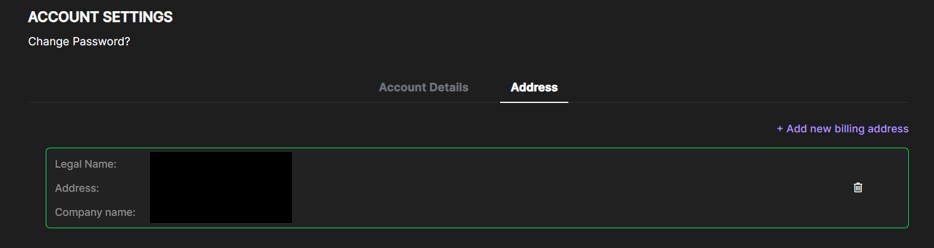 To remove your existing address, click the dustbin icon next to it. - Add a New Billing Address
