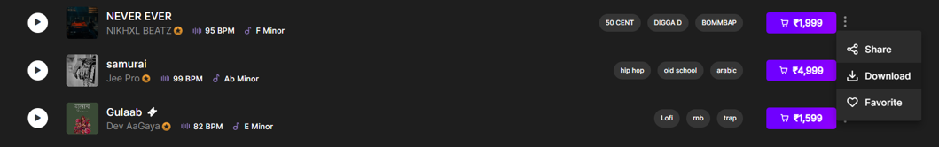 On the beat card (top right corner), click the three vertical dots next to the price.