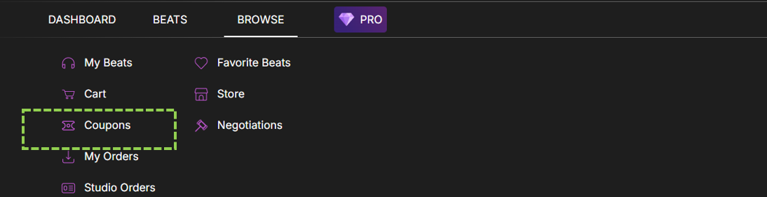 Coupon Codes allow you to offer discounts on your beats, helping drive more sales, attract new buyers, and reward loyal fans.