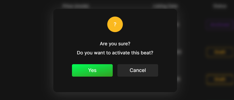 - A pop-up will appear, select “Yes” to confirm. Your beat will be moved back to Active status.