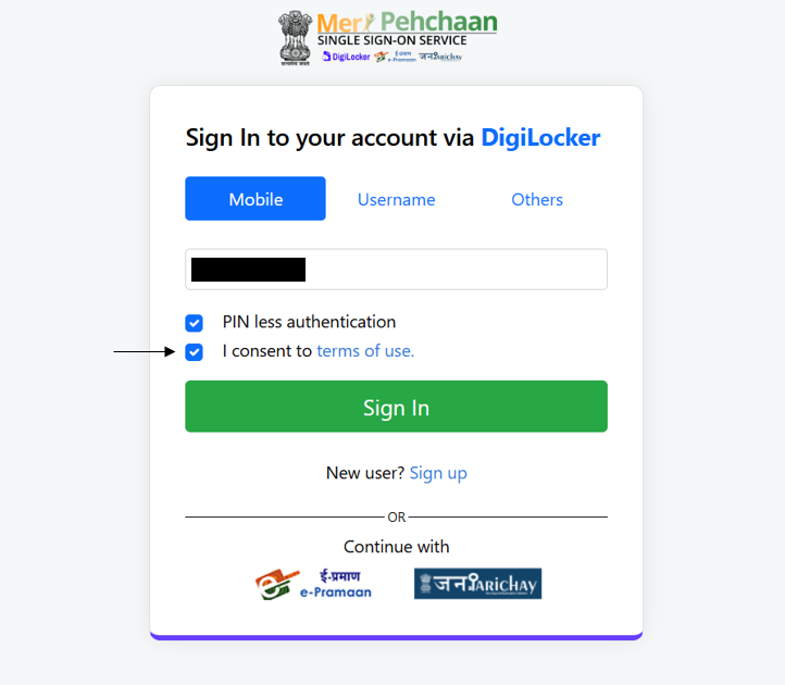 4. Click on Continue with DigiLocker.